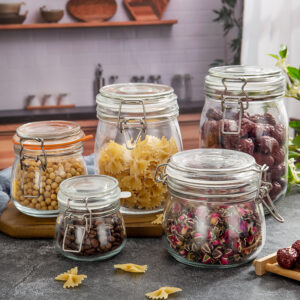Airtight glass jars perfect for dry goods and snacks, with strong, heat-fill-safe quality.